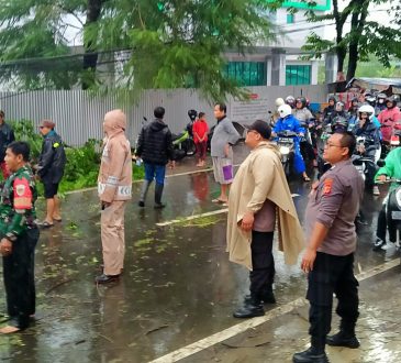 KAB. BANDUNG. BANDUNGPOS ID. Personel Polsek Pameungpeuk Polresta Bandung bergabung bersama warga membersihkan material pohon tumbang menutupi badan jalan di...