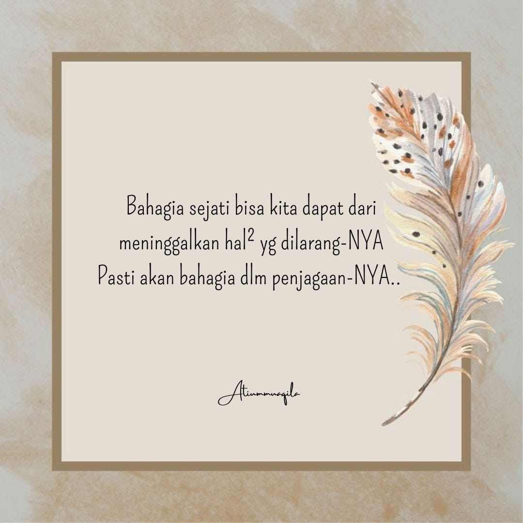 SEPERTINYA.. banyak yang menganggap bahagia hanyalah tentang mendapatkan sesuatu. Padahal, bahagia yang sejati juga bisa kita dapatkan dari meninggalkan sesuatu. Meninggalkan hal-hal yang dilarang-Nya, pasti akan bahagia dalam penjagaan-Nya.