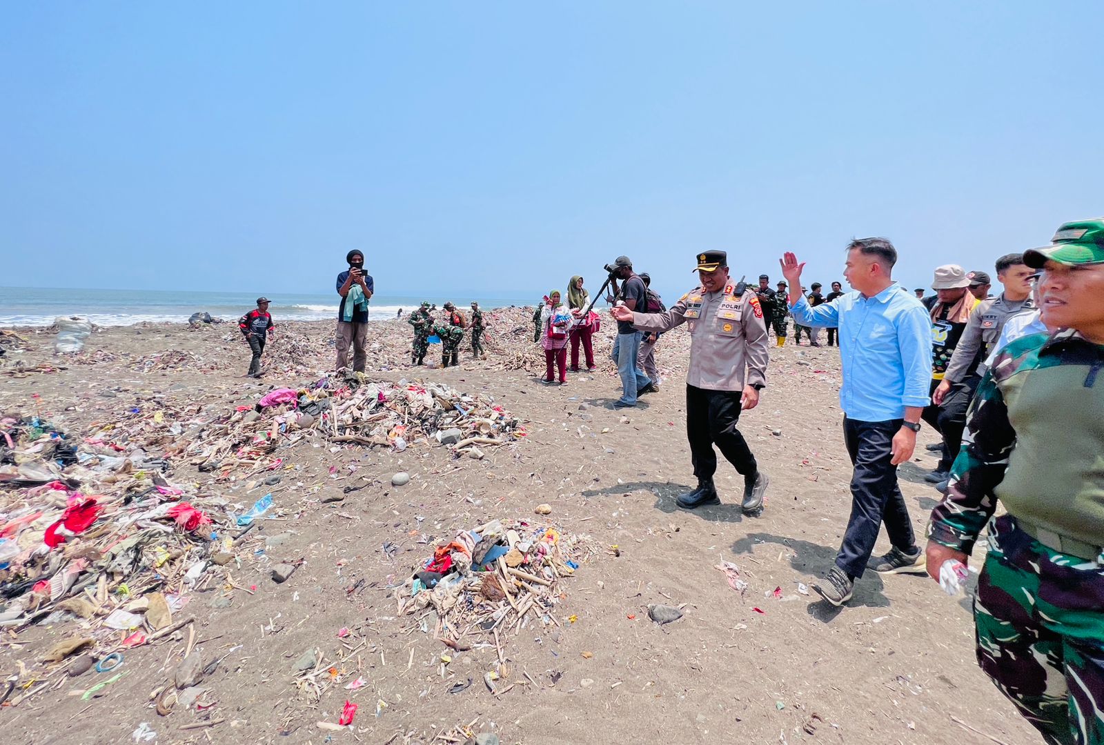 “Terakhir Pak Dandim, bulan Juni sampai Juli, (sampah Pantai Cibutun) dibersihkan, sekarang sudah ada lagi setinggi ini. Artinya, tetap kesadaran kita untuk membuang limbah, limbah sampah itu masih sangat rendah. Jadi hanya ingin gampangnya, dibuang ke sungai, dibuang ke laut,” tuturnya.