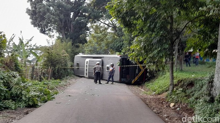 Bus Rombongan Siswa Ciamis Terguling di Jatinangor