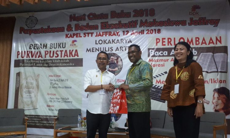 Makasar, BANDUNGPOS.ID: Sekjend Asosiasi Penulis Profesional Indonesia yang juga Ketua LPM Terbaik 1 Makassar, Bachtiar Adnan Kusuma, tampil berbicara di depan 200 orang calon pendeta dan mahasiswa S1, S2 dan S3 STT Jaffray kota Makassar, Kamis 12/4. Bachtiar membedah siapa bangsa yang membaca, kondisi dan wajah industri buku nasional dan kampanye membaca 15 tiap hari di perpustakaan, mendapat perhatian serius dari mahasiswa dan dosen STT Jaffray yang dihadiri Ketua STT Jaffray Dr Peniel CD Mauaweang, Kepala Perpustakaan STT Jaffray, Johana Beatrix Tumbol, SE.MM.