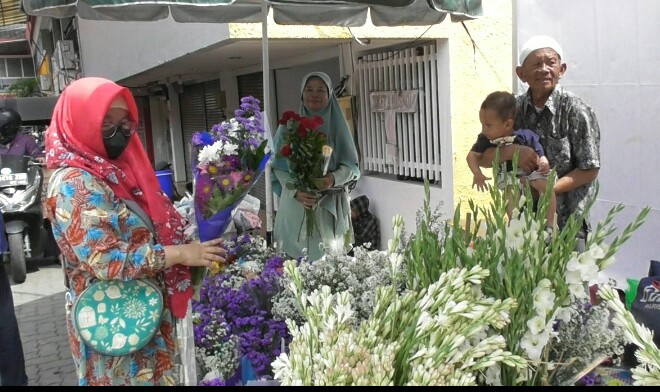 Arus Kusmana (67) salah seorang pedagang bunga mengatakan bisa menjual ratusan tangkai bunga jelang hari raya. Ia pun menjual jenis bunga seperti mawar, aster, hingga sedap malam. Arus mengaku biasanya bakal berjualan bunga musiman hingga malam takbiran atau dini hari nanti.