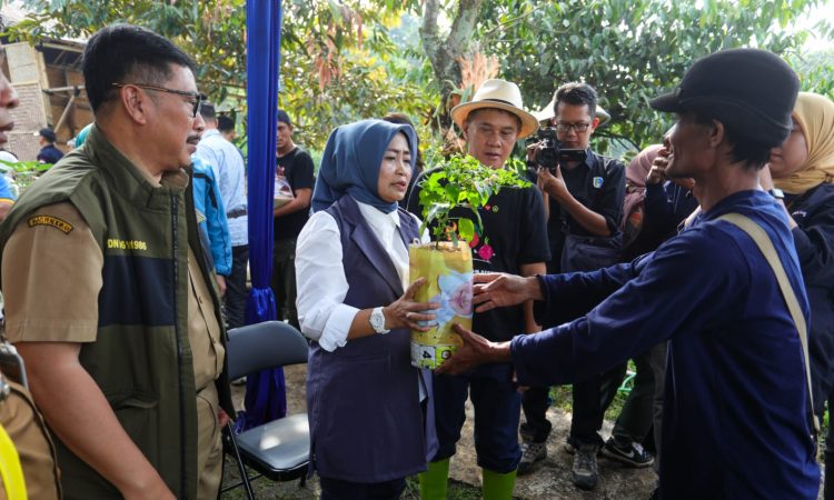 Pelaksana Harian Sekda Kota Bandung, Hikmat Ginanjar dan Penjabat Ketua TP PKK Kota Bandung Linda Nurani Hapsah didampingi beberapa kepala Organisasi Perangkat Daerah (OPD) secara simbolik melakukan penanaman di Buruan Sae Pemuda Mandiri, Kelurahan Sukawarna Kecamatan Sukajadi, Selesa (30/4/2024).