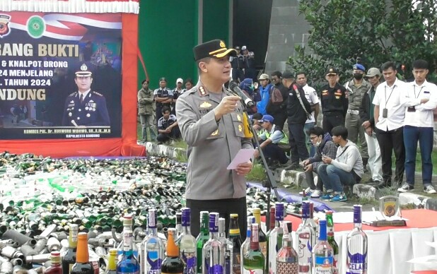 Polresta Bandug musnahkan minuman keras sebanyak 19.700 botol dengan berbagai merek, minuman jenis tuak 675 liter, pil 94.00 butir dan knalpot brong sebanyak 1.000 buah.