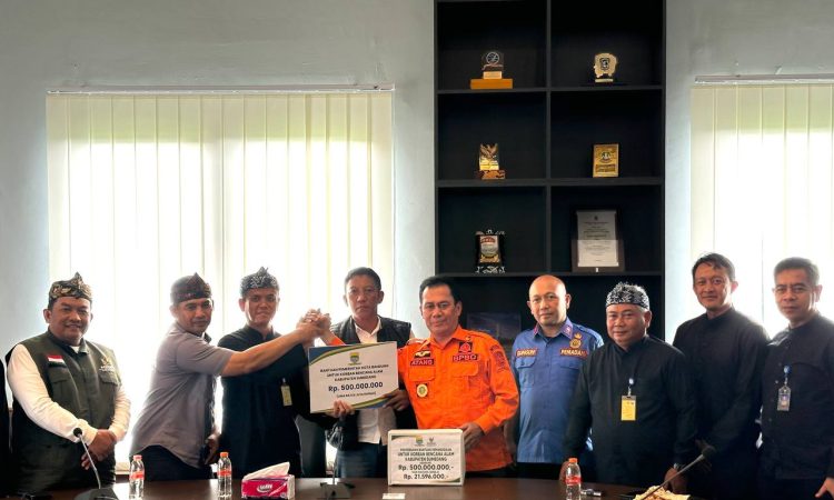 Bandung, bandungpos.id — Asisten Pemerintahan dan Kesra, Asep Saeful Gufron, mewalili Wali Kota Bandung, Bambang Tirtoyuliono, bersama Baznas Kota Bandung menyerahkan bantuan berupa uang dan paket sembako secara simbolik untuk warga terdampak gempa di Kabupaten Sumedang.