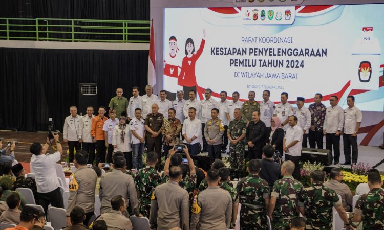 Bandung, nsndungpos.id — Sebanyak 27 pemerintah kabupaten dan kota se-Jawa Barat berkoordinasi mengenai kesiapan penyelenggara pemilu yang tersisa 7 hari lagi di Sport Jabar, Rabu (7/2/2024).
