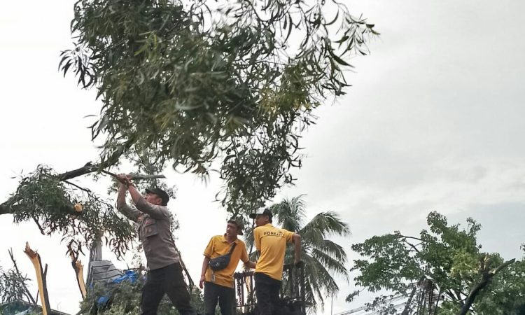 Personil Polsek Rancaekek Polresta Bandung gerak cepat evakuasi pohon tumbang yang diakibatkan oleh hujan yang disertai angin kencang beberapa saat yang lalu.