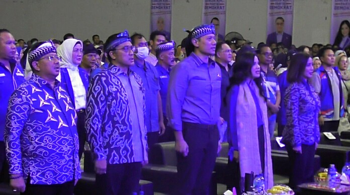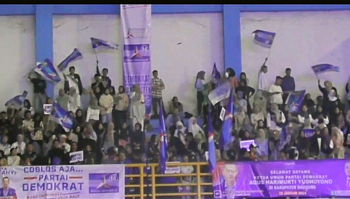 Ribuan kader serta simpatisan Partai Demokrat se-Kabupaten Bandung dengan antosias menghadiri konpanye Ketua Umum Partai Demokrat, Agus Hari Mukti Yudoyoono (AHY) yang dilkukan di Indoor Si Jalak Harupat, Kecamatan Kutawaringin, Kabupaten Bandung, Rabu (10/1).