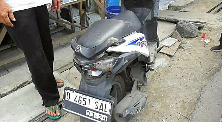 Keterangan supir Firman Nurbaha, (18) bin Amin yang beralamat di Kampung Ciburuy Desa Cintakarya, Kecamatan Sindang kerta, Kabupaten Bandung Barat mengatakan, Kaburnya setelah menabrak motor karena takut, akunya.